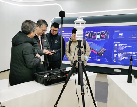 毛玉如副站长一行首先参观了公司户外试验区噪声源追踪 蜜桃视频在线观看,定位,识别系统,测试人员现场演示了噪声定位,鸟叫虫鸣识别等公司研发的最新科技产品,熊明华总经理介绍了公司参与全国“宁静小区”建设试点工程的实际成效和经验。