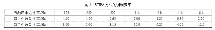 STIPA是完整STI的一种简化形式,称之为公共广播系统语音传输指数 蜜桃在线视频,它是基于使用较少数量的调制指数进行的测量,STIPA测试信号仅由1个测试信号组成,在7个倍频带中的每一个波段都预设两个调制如表1所示,这14个调制指数是同时产生的,一次测量时间仅需15~25s,比完整STI要短得多,是直接方法的主要应用途径,调制指数也可以使用间接法得出,称为STIPA(IR)。